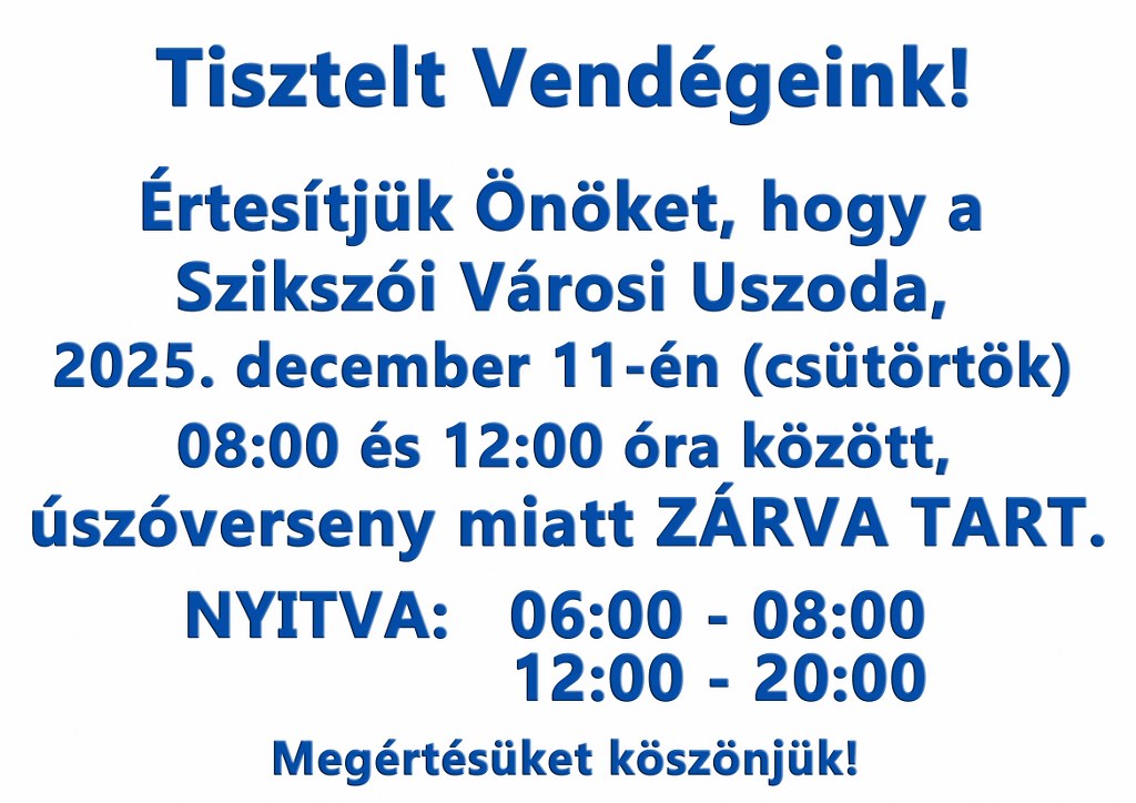 Szombat - Vasárnap: 8:00 - 20:00